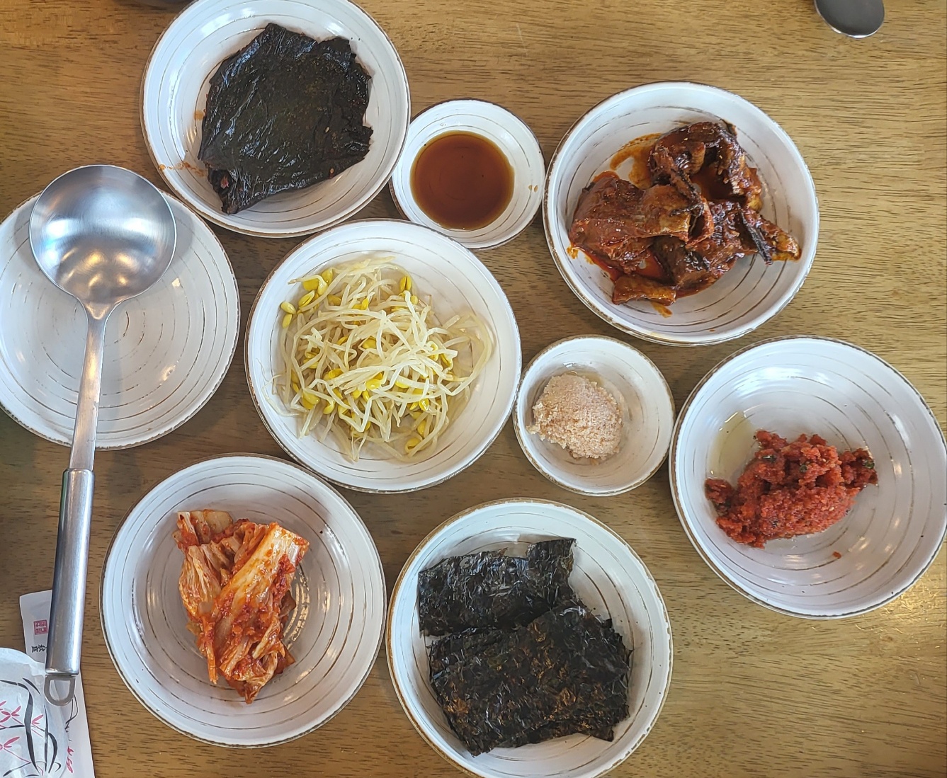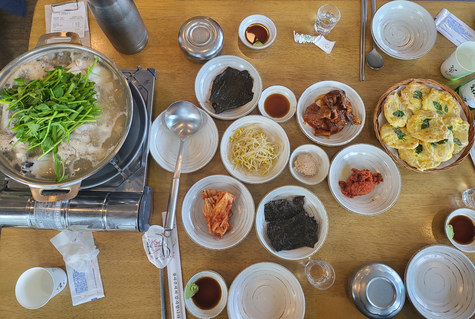 먼저 저희는 3명이었고 생대구 지리탕 2인분에 생대구전을 주문했습니다. 맛집으로 소문난 이 식당에는 어김없이 손님들이 많이 있었습니다. 바로 나온 밑반찬이 너무 맘에 들었습니다. 직접 담근 배추김치, 콩나물, 깻잎장아찌, 코다리조림, 대구알, 청어알젓갈을 김에 싸서 드세요라는 직원분의 팁을 듣고 하얀 쌀밥의 뚜껑을 열지 않을 수 없었습니다. 너무 맛있는 청어알젓의 양념이 최고였습니다.
